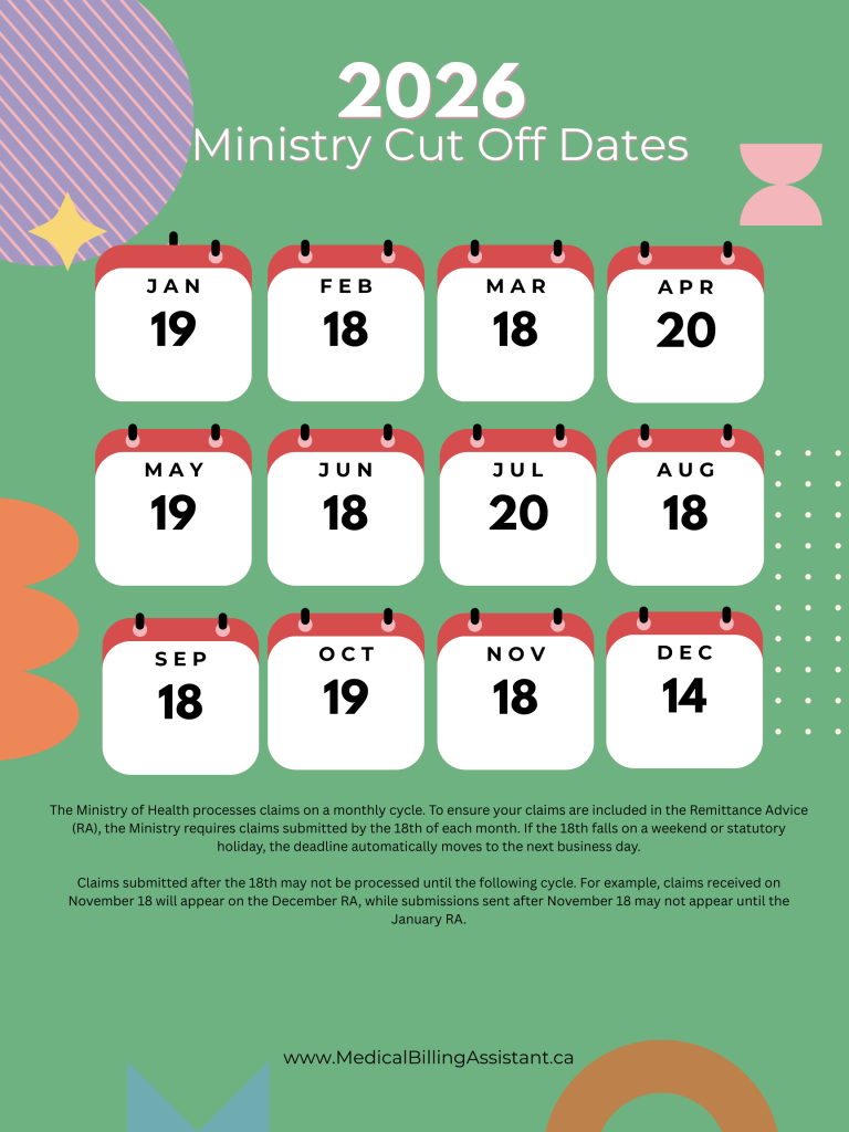Claims will continue to be processed by OHIP during the rest of the month but are not guaranteed to be processed after the official cut-off date. If a claim is not submitted by official cut-off it may not be assessed until the next monthly billing cycle.